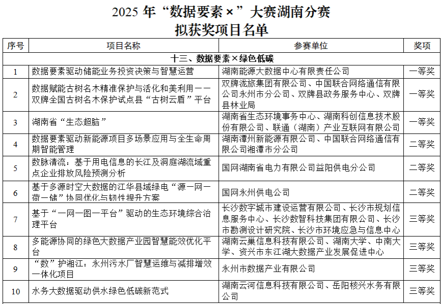 喜报!湖南省“生态超脑”项目斩获湖南省“数据要素X”大赛绿色低碳赛道一等奖并成功晋级国赛!