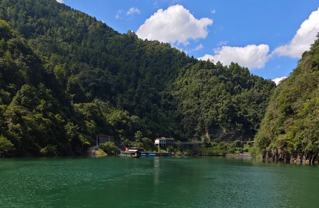 客船是前一日竹圆山庄的老板熊为我们预约的。脚刚踏入悠悠荡荡的水面,从前舱发动机的声音里忽然穿透出一声嘹亮的号子“伙计们哪!喝一碗壮胆的好酒,好启航哪!我手拿船篙哎,唱山歌!我撑船的汉子,好快活哎!”