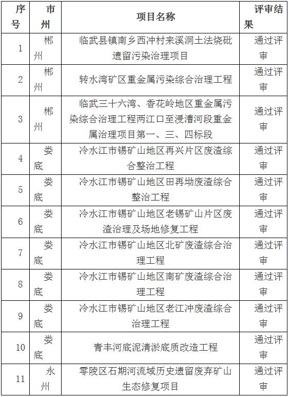 附件:湖南省山水林田湖草2018年重金属治理项目评审结果