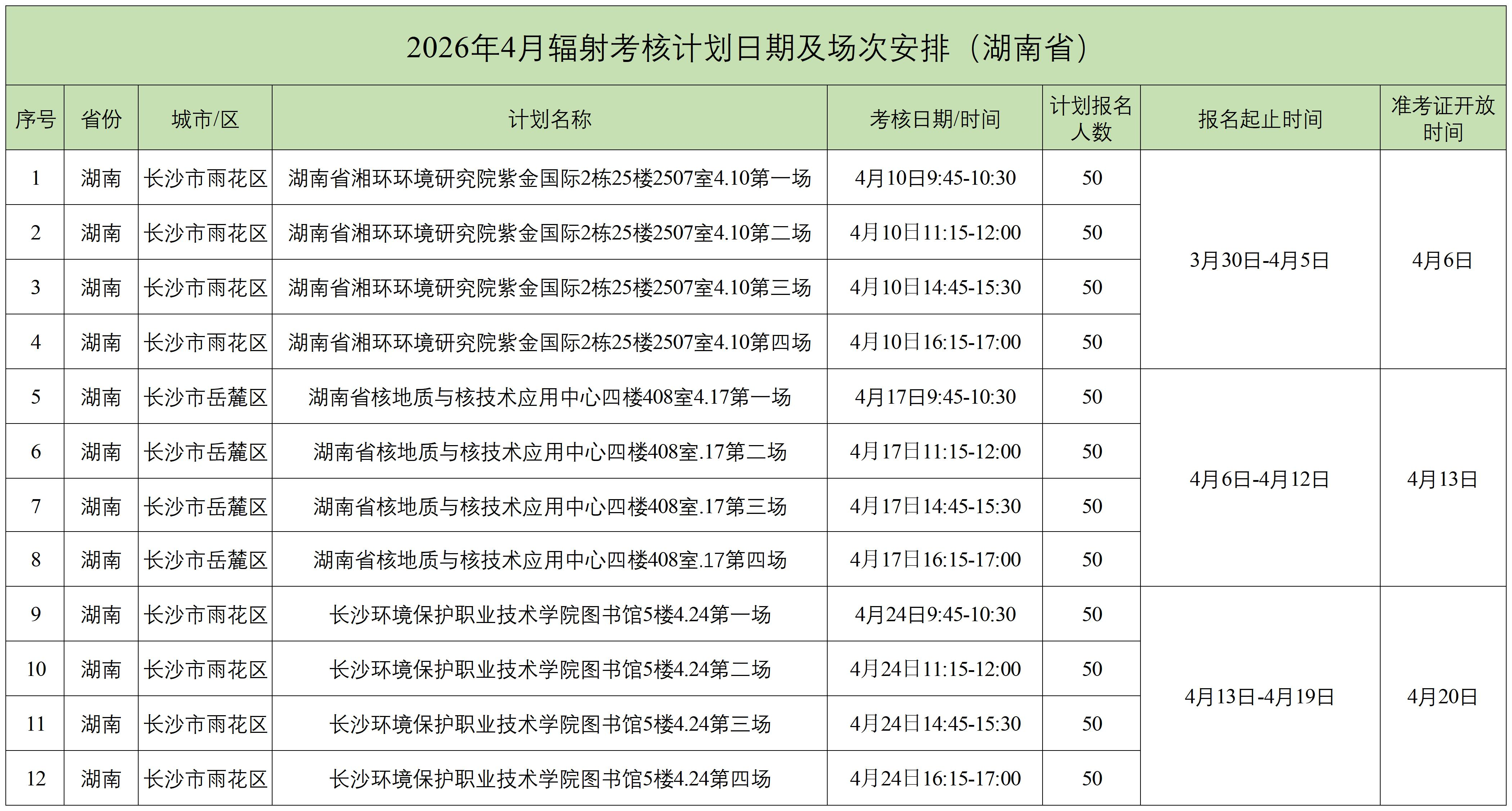 - 名称: 湖南省辐射安全与防护考核2026年4月份考核计划