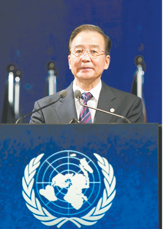 6月20日,国务院总理温家宝在里约热内卢出席联合国可持续发展大会,并发表《共同谱写人类可持续发展新篇章》的演讲。