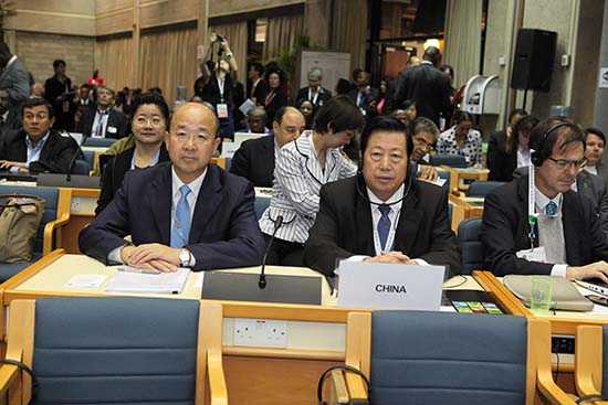 环境保护部部长周生贤率领由环境保护部、外交部和常驻环境署代表处人员组成的中国政府代表团参会。 国际司供图