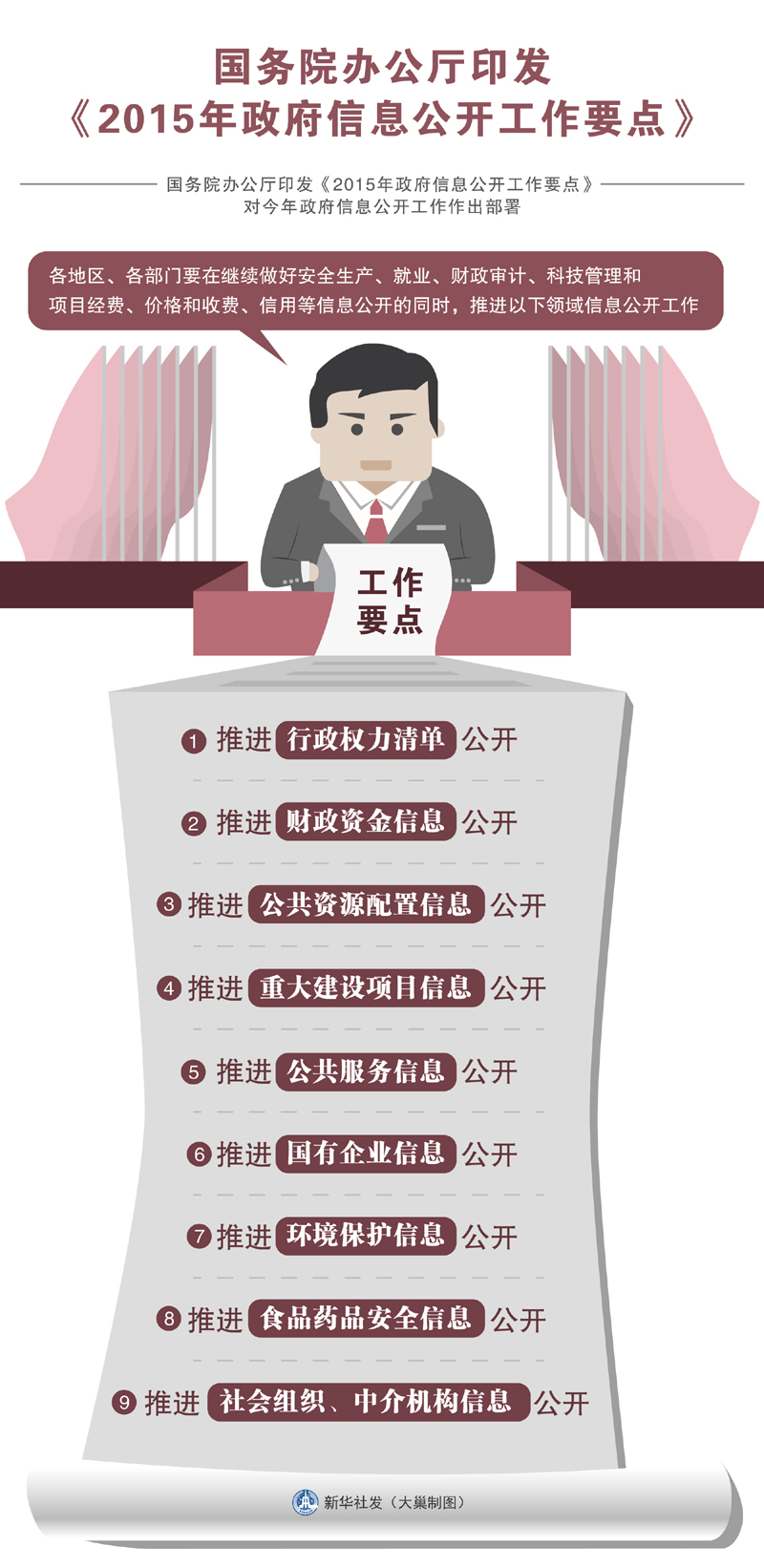 国务院办公厅印发《2015年政府信息公开工作要点》