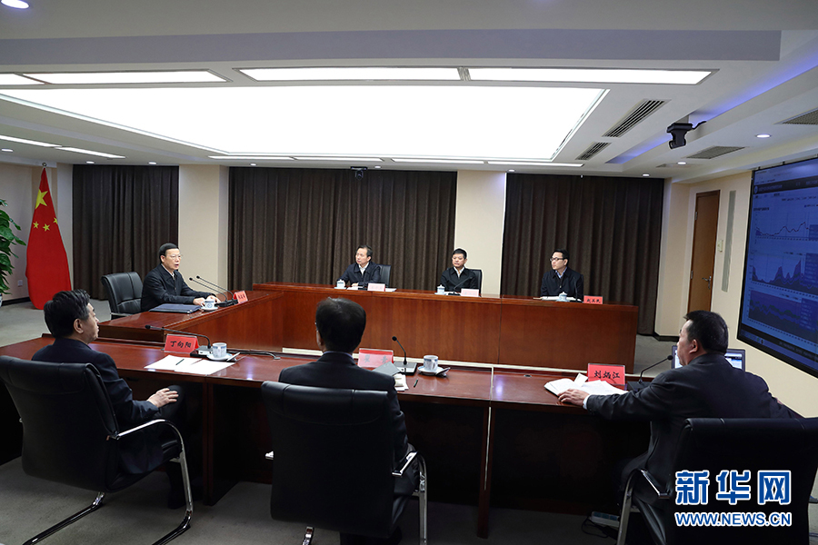 11月17日,国务院副总理张高丽到环境保护部调研并主持召开座谈会。这是张高丽在观看全国空气质量实时监测数据平台和京津冀传输通道城市重污染天气应急管理平台演示。新华社记者 王晔 摄