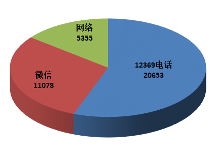2018年1月,全国各级环保部门共接到环保举报37086件,相比上月减少13.2%,其中“12369”环保举报热线电话20653件,约占55.7%,微信举报11078件,约占29.9%,网上举报5355件,约占14.4%。受理的32402件举报中,已办结17444件,其余14958件正在办理中。