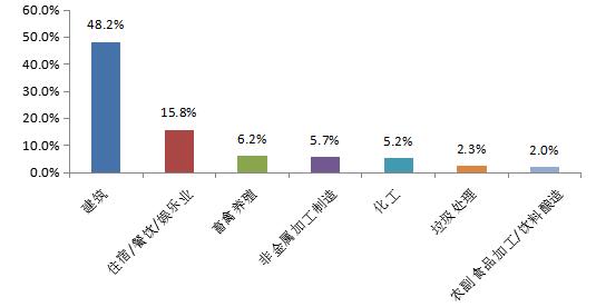 从行业类型来看,本月公众反映最集中的行业是建筑业,占48.2%,其次为住宿餐饮娱乐业和畜禽养殖业,分别占15.8 %和6.2%。