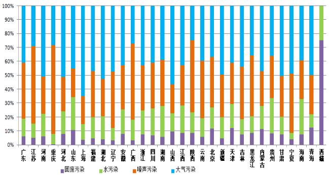 (注:一件举报中可能同时涉及多种问题,因此各污染类型之和>100%。)