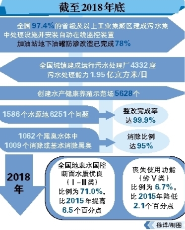 生态环境部公布2018年度《水污染防治行动计划》重点任务实施情况 全国地表水国控断面水质优良超七成
