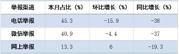 二、电话、微信、网上举报同比均显著下降