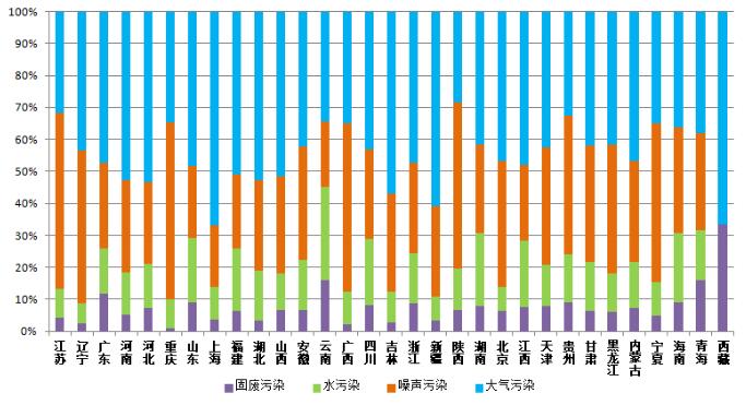 (注:一件举报中可能同时涉及多种问题,因此各污染类型之和≥100%。)