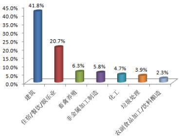 从行业类型来看,本月公众反映最集中的行业是建筑业,占41.8%,其次为住宿餐饮娱乐业和畜禽养殖业,分别占20.7%和6.3%。