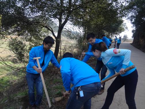 纪念活动和启动式结束后,由区环保局党组书记曾丰良带领“环保先锋”学雷锋志愿服务队,立即奔赴志愿服务活动点黄金园街道英雄岭村,开展义务植树和农村生态环境保护宣传活动。在英雄岭村公路沿线,到处都是“环保先锋”志愿者们忙绿的身影,他们填土的填土、浇水的浇水,干得十分起劲,经过一番热火朝天的劳动,大家栽下一棵棵树苗,种下一份份绿色希望。志愿者们还挨家挨户的分发宣传资料,耐心向村民讲解着农村生态环境保护知识,英雄岭村村民对“环保先锋”志愿者到来表示热烈的欢迎和高度的赞誉。
