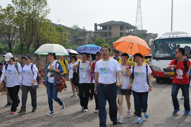 毅行第一天,天公不作美,陆续出现多次阵雨,毅行部分路段泥泞难走,但环保志愿者们的热情很高,大家冒雨前行,相互鼓励照顾,很多女同志是第一次参加,脚上都磨出了血泡,却坚持走完了首日路程。