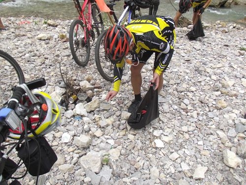 到达活动地点后,志愿者们手提垃圾袋俯身捡拾地上的塑料盒、树叶、包装袋、饮料瓶等垃圾,沿着小溪一路下来黑色垃圾袋已装满了各种生活垃圾,虽然队员们感到脏累,但是看着被清理干净的小溪滩大家也都露出了欣慰的笑容。