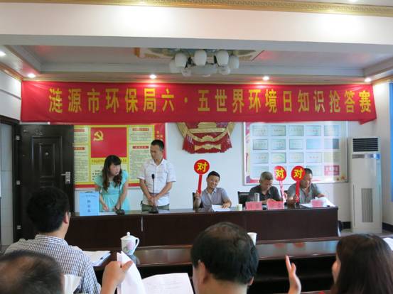 为纪念第43个“六·五”世界环境日,积极响应我党发出“向污染宣战”这一保护环境的号召,进一步提高环保干部的业务水平,6月5日,涟源市环保局全体干部职工在四楼会议室举行环保知识抢答赛。