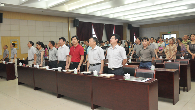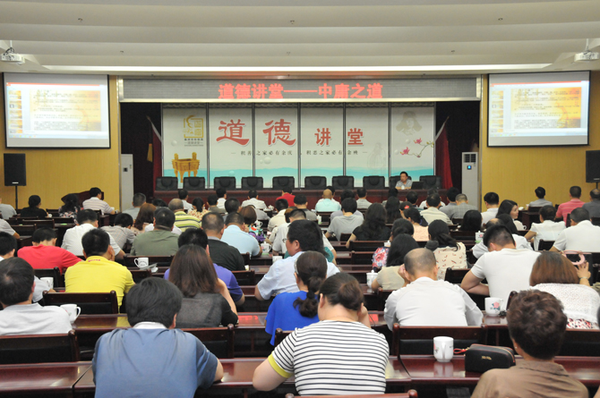 2014年6月23日下午,株洲市环保局组织系统副科级以上干部听取道德讲坛,请张人杰教授讲授《中庸之道》。