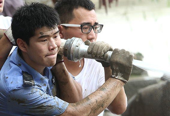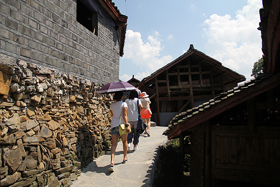 7月31日,多所高校的大学生志愿者代表在排碧乡十八洞村参观正在建设中的农村环境整治工作。(摄影:龙安成 龙权)