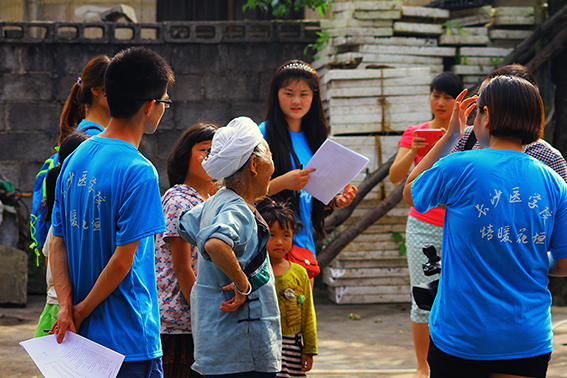 7月6日,长沙医学院的志愿者在该县吉卫镇环境连片综合整治村进行问卷调查。(摄影:龙安成 龙权)