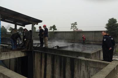 环保、公安执法人员在常德定海管桩公司实地查看降尘废水处理