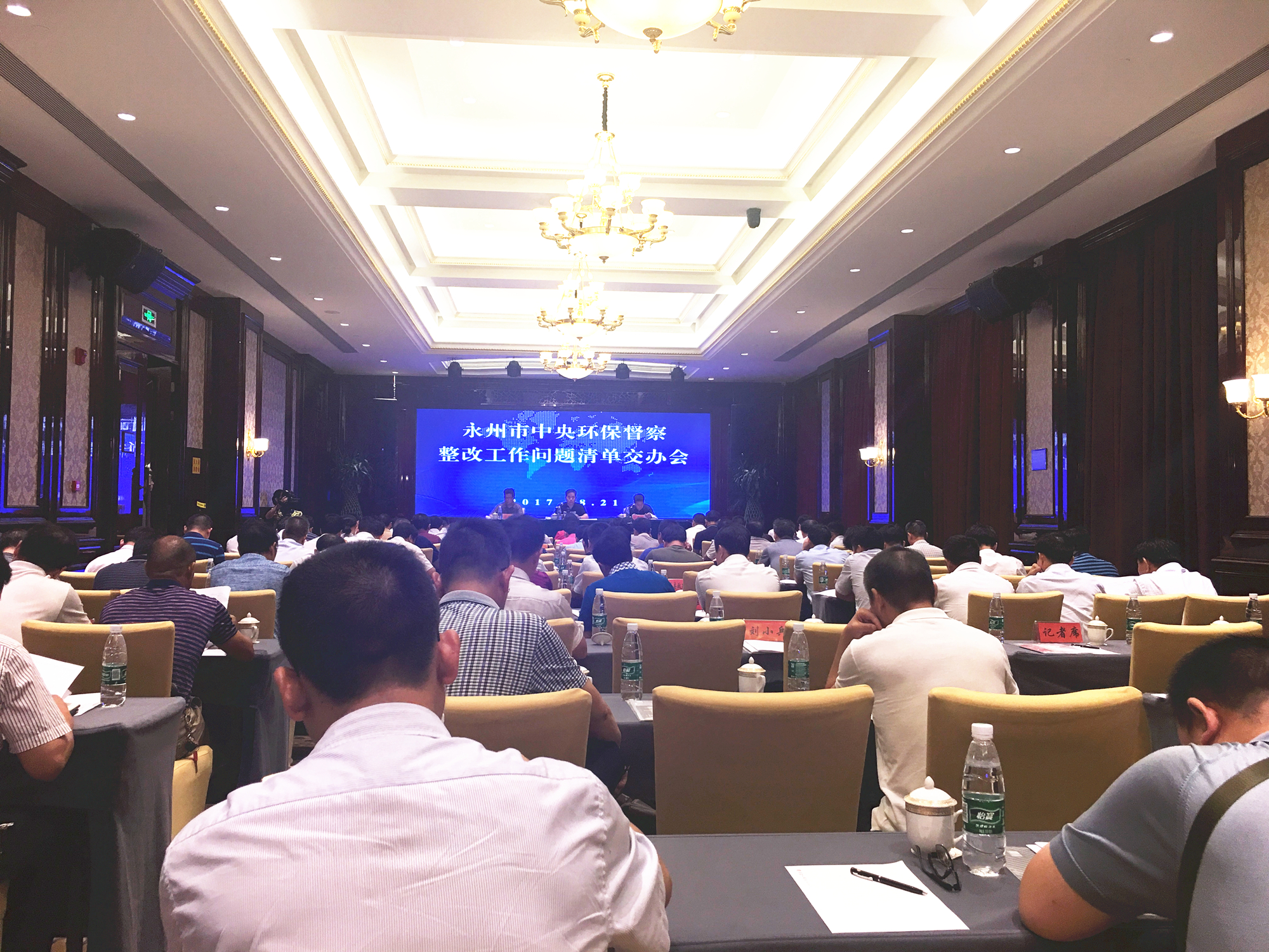 8月21日下午,永州市召开了中央环保督察整改工作问题清单交办会,对中央第六环境保护督察组反馈意见整改工作问题清单按职责给各县区和相关市直部门进行了交办。市直各单位主要负责人、各县区县区长、各管理区、经开区主任及全市环保系统相关人员共计90余人参加了会议。会上,永州市环保局局长谭立宏宣读了《永州市贯彻落实中央第六环境保护督察组反馈意见整改方案》。永州市市委常委、常务副市长唐湘林作了重要讲话。
