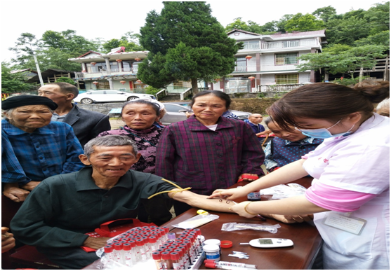 桑植县新民村的老人们免费接受体检