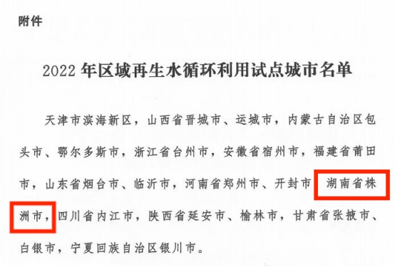 近日,株洲市成功获评2022年区域再生水循环利用试点城市。