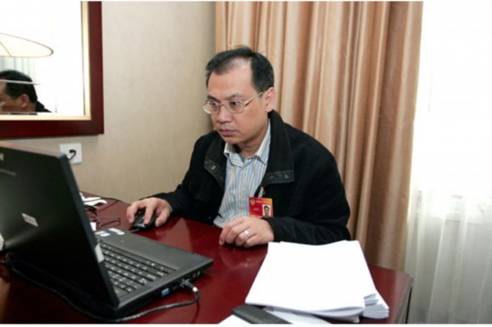 图为潘碧灵副厅长利用休息时间在驻地认真学习两会文件,查阅