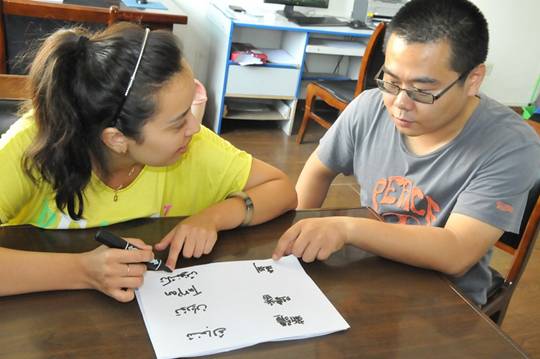 图片:与维族同事交流进行双语学习
