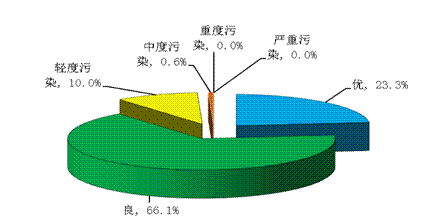 按照《环境空气质量标准》(GB3095-2012),2014年9月份,我省长沙、株洲、湘潭、岳阳、常德、张家界6个城市环境空气质量达标天数比例范围在80.0%~100%之间,平均达标天数比例为89.4%;平均超标天数比例为10.6%,其中轻度污染占10.0%,中度污染占0.6%。影响6个环保重点城市环境空气质量的主要污染物是细颗粒物(PM2.5)。
