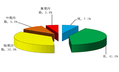 按照《环境空气质量标准》(GB3095-2012),2014年10月份,我省长沙、株洲、湘潭、岳阳、常德、张家界6个城市环境空气质量达标天数比例范围在35.5%~61.3%之间,平均达标天数比例为48.9%;平均超标天数比例为51.1%,其中轻度污染占35.9%,中度污染占9.8%,重度污染占5.4%。影响6个环保重点城市环境空气质量的主要污染物是细颗粒物(PM2.5)。
