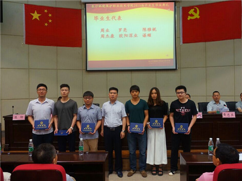 学院领导为获得各项荣誉的毕业生代表颁发荣誉证书和毕业证。教师代表 环境工程系雷蕾发言,希望环院的毕业生们在未来的人生路上能够继续学习,不断创新创业,不忘感恩。毕业生代表环境监测系环境规划与管理1234班黄乔霏同学发言,她代表全体毕业生向辛勤耕耘、默默奉献的老师们道一声谢谢,向朝夕相处、情同手足的同学们道一声珍重。