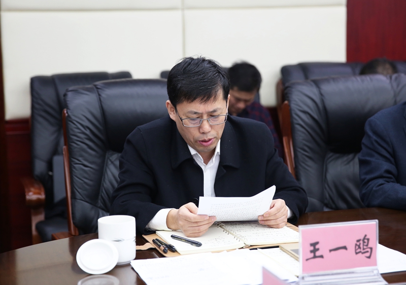 省环保厅党组副书记、厅长王一鸥传达学习了习近平总书记在党的十八届六中全会上的重要讲话精神(文萍摄)