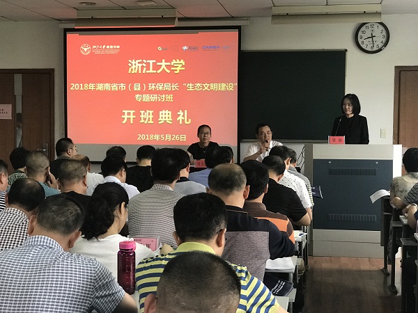 5月26日至30日,湖南省环境保护厅在浙江大学紫金港校区举办2018年市(县)环保局长“生态文明建设专题研讨班”。湖南省环保厅巡视员王会龙、浙江大学管理学院党委副书记刘玉玲出席培训班开班仪式并做动员讲话,来自全省14个市州的共80余名市(县)环保局长参加了此次培训。
