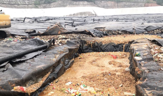 (三)违规接纳餐厨垃圾,除臭措施不到位。双马填埋场未按要求进行垃圾入场检测,违规接纳餐厨垃圾,增加库区运行特别是渗滤液收集处理难度。填埋作业时,垃圾覆盖不及时,密闭性差,在天气状况较差和早、晚气压较低等条件下,臭味外溢扰民。餐厨垃圾等湿垃圾进入填埋场,有机质含量较高,在夏季高温湿热环境中容易产生异味,增加除控臭难度。