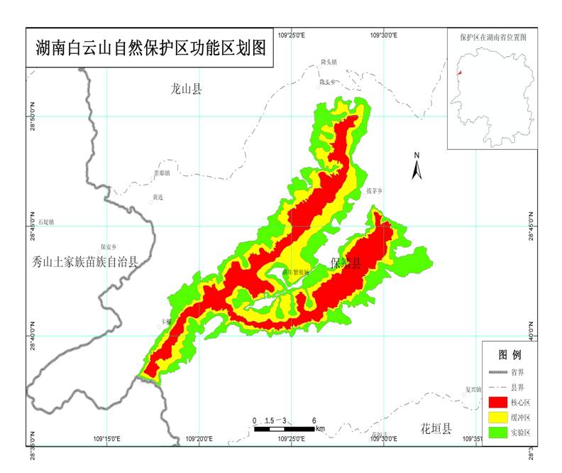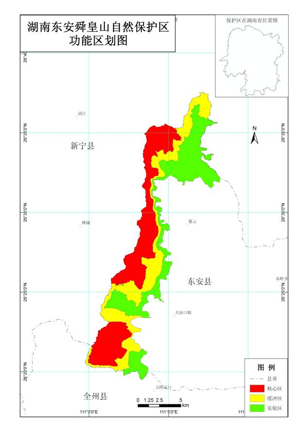 保靖白云山和东安舜皇山自然保护区的功能区划图