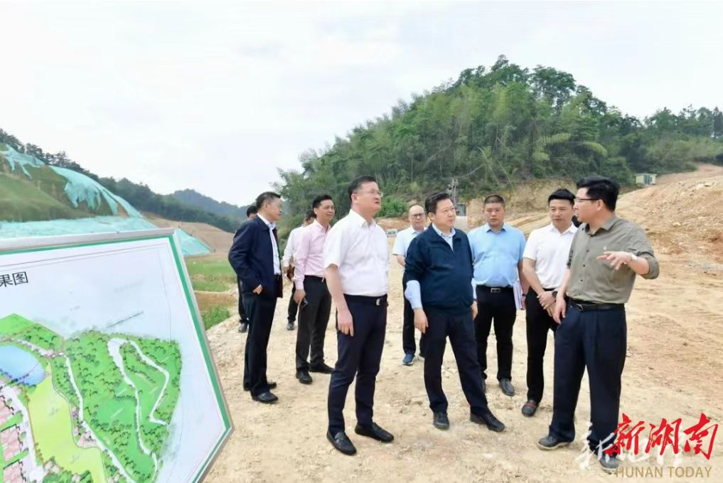 (5月10日,湘潭市委、市政府相关负责人带队督导湘乡市梅桥镇酒铺村环山塘集中联建点涉嫌无证采矿问题整改。图来自省生态环境厅)
