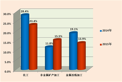 图5 2014年、2015年1-6月三大污染行业举报占比