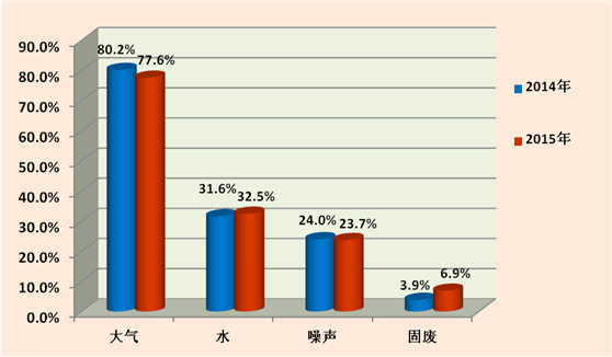 图3 2014年、2015年1-6月主要污染类型举报占比