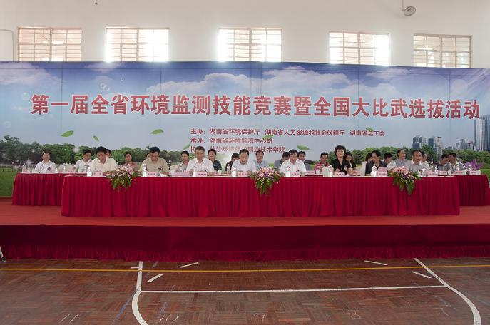 7月29日,由省环境保护厅、省人力资源与社会保障厅、省总工会共同主办的全省第一届环境监测技能竞赛暨全国大比武选拔活动落下帷幕,省政协副主席阳宝华、国家环保部监测司副司长朱建平、中国环境监测总站副站长傅德黔、省政府副秘书长谈敬纯等领导观看比武并为获得“湖南省五一先锋”光荣称号的选手张艳和获得团体一等奖的湘潭市环境监测站代表队等单位和个人颁奖。