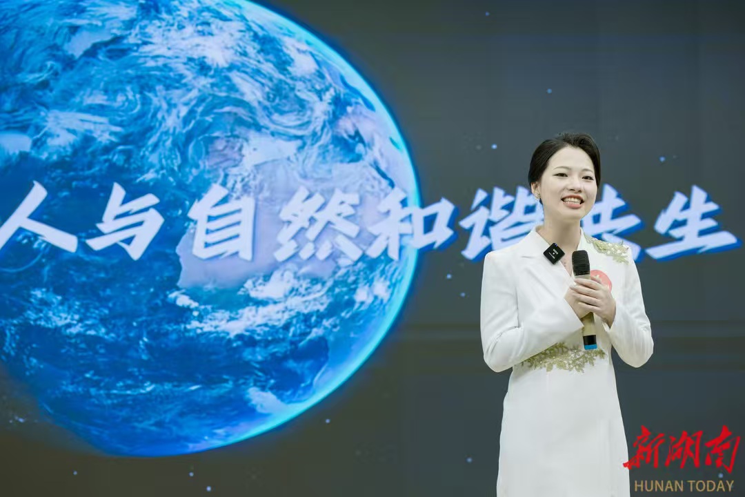 朗读不仅传递地质精神,更吟诵出生态环境保护的绿色诗章。来自湖南省生态环境事务中心的曾译婳以《你听过地球的声音吗》唤起公众对保护地球生态的共情;生态所周汐璇演绎的《两山理念的常德注脚》,则呈现了新时代生态文明建设在城市发展中的生动实践。尤为动人的是少年组的“绿色小卫士”们:蔡乐熙在《我与万物做朋友》中表达了对人与自然和谐共生的美好愿景,他们清澈的嗓音与纯真的情感,展现了生态文明建设绵延传承的青春力量。